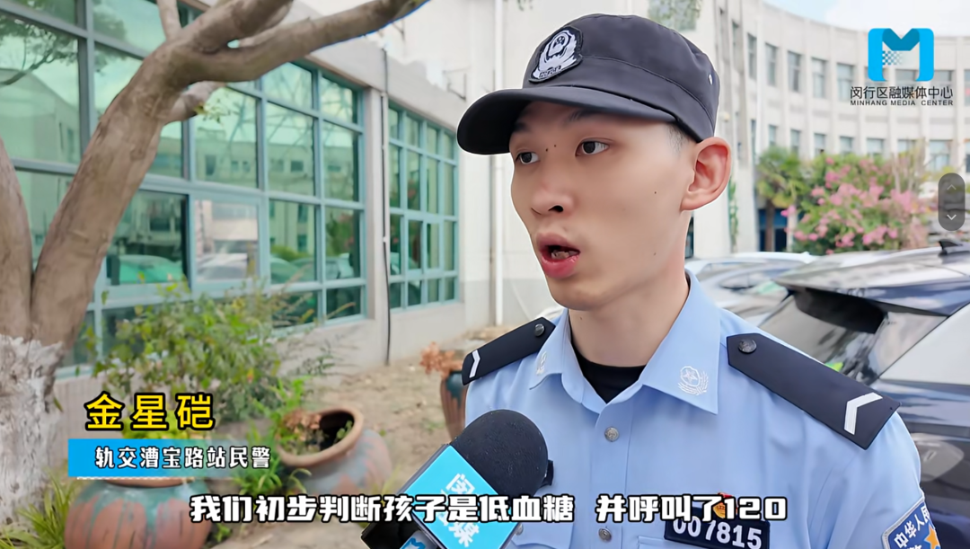 孩子瘫坐在地,身上直冒冷汗,民警立即询问孩子的妈妈孩子是否有慢性疾病,妈妈表示没有,民警初步判断孩子是低血糖,并呼叫了120.
